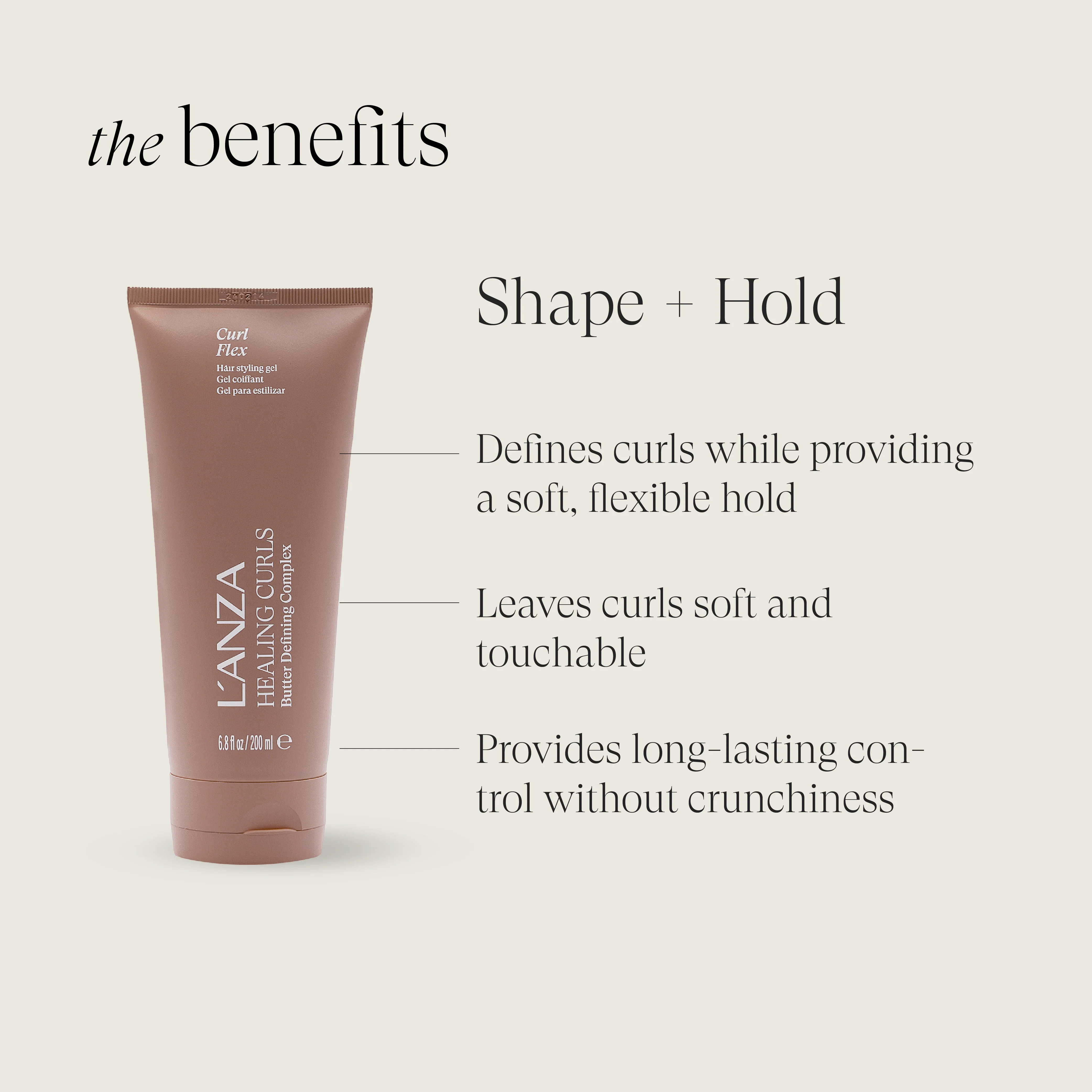 This lightweight styling gel shapes and defines curls, delivering all-day flexible hold. Designed for resilient curl definition without stiffness, it leaves hair soft, bouncy, and never crunchy or heavy.